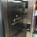 O sistema conta com porta automática, controle digital de velocidade e acabamento em aço inox escovado, combinando elegância e eficiência energética.